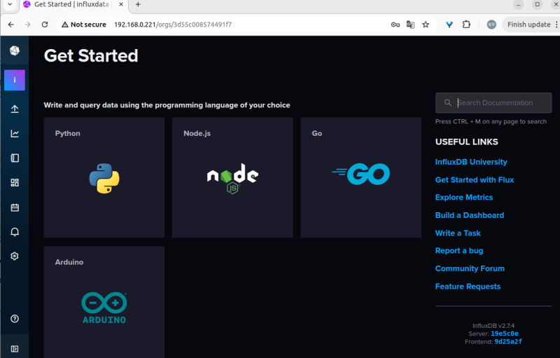 influx-client를 깔고 열어놓은 서비스 포트로 기어들어가면 된다. 80포트로 열린다.