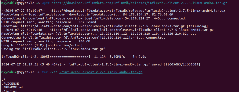 wget https://download.influxdata.com/influxdb/releases/influxdb2-client-2.7.5-linux-amd64.tar.gz