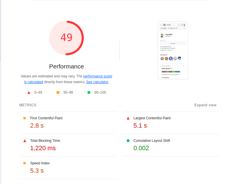 예를 들어 Lighthouse로 Github 사이트를 돌려보면, 이런 식으로 나온다.