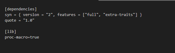 우선 crate는 2개 파서 연결해야한다. proc macro가 일반적인 코드 crate에서는 사용할 수 없다는 제약 때문이다.