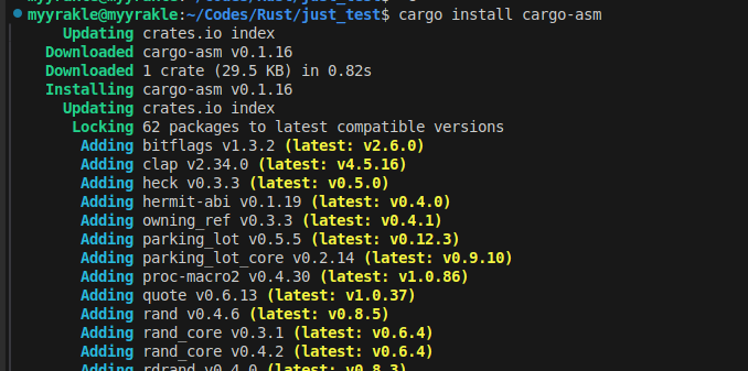 νλ‘μ νΈ λ£¨νΈ κ²½λ‘μμ cargo asmμ μ€ννλ©΄, μ μμ μμΉν μ¬λ³Όλ€μ μ‘°νν μ μλ€.