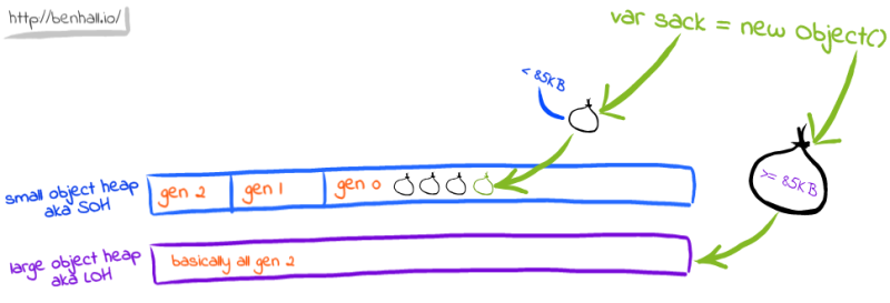 ์์ธ์ ์ผ๋ก ๋งค์ฐ ํฐ ๊ฐ์ฒด๋ 0์ธ๋์ ๋ฃ์ ์๊ณ ๋ํ ๊ฐ์ฒด ํ(Large Object Heap:LOH)์ด๋ผ๋ ๊ณต๊ฐ์ ๊ฒฉ๋ฆฌํด์ ์ ์ฅํ๋ค. ํฐ ๊ฐ์ฒด์ ๊ธฐ์ค์ 85000๋ฐ์ดํธ๋ค.