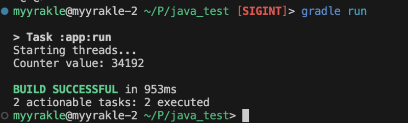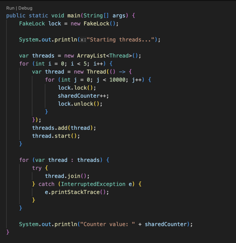System.out.println("Counter value: " + sharedCounter);