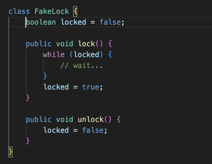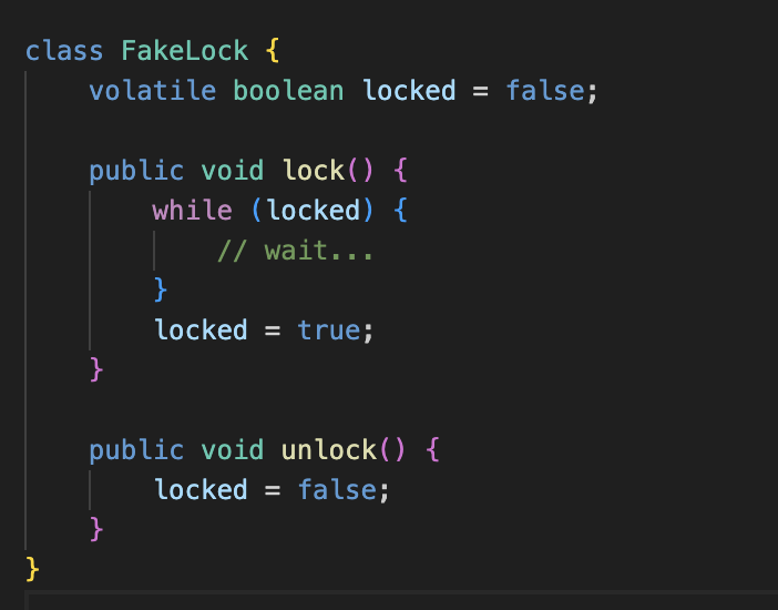μλλ μλ¬΄λ° λκΈ°ν μλ¨λ μμ΄ Lockμ ꡬνν κ°λ¨ν ν΄λμ€λ€.