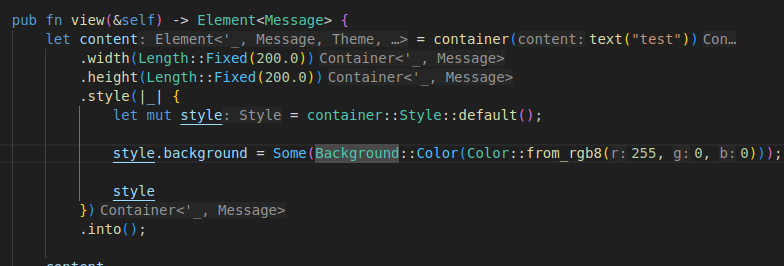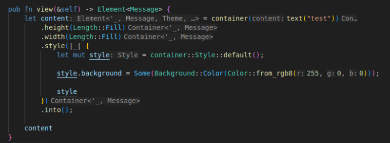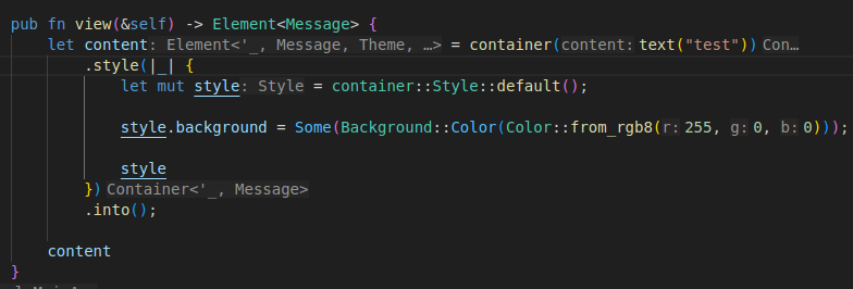 style.background = Some(Background::Color(Color::from_rgb8(255, 0, 0)));