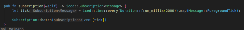 let tick = iced::time::every(Duration::from_millis(2000)).map(Message::ForegroundTick);