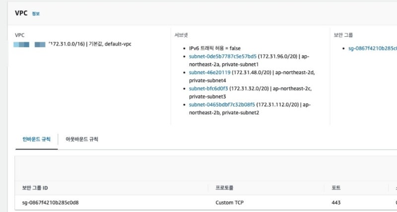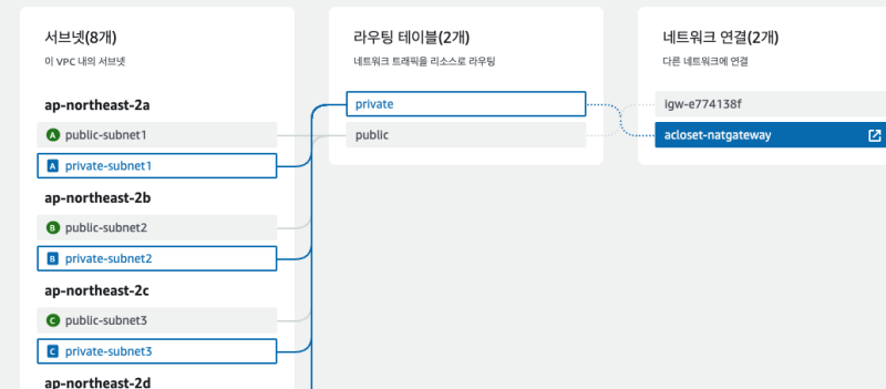 vpc 설정에서 private 서브넷만 물도록 설정한다.