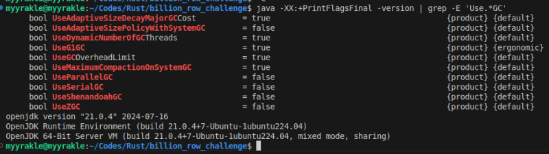 현재 기본 GC는 다음 명령으로 확인할 수 있다.