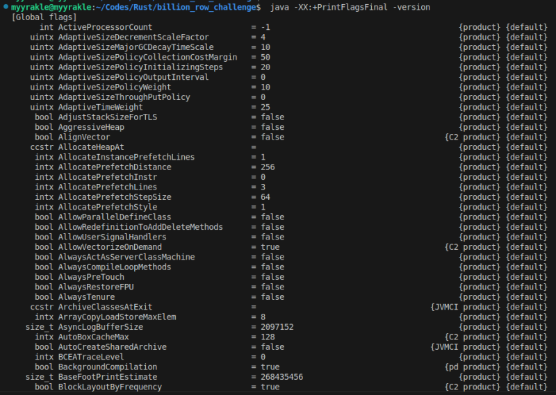 java -XX:+PrintFlagsFinal -version