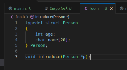 bindings::introduce(&mut foo as *mut bindings::Person);