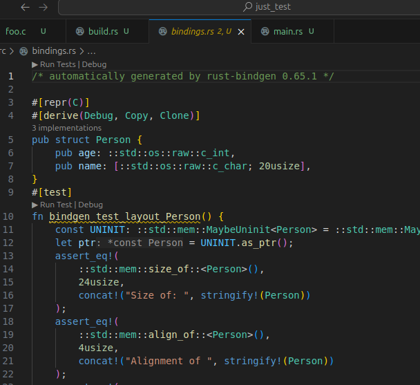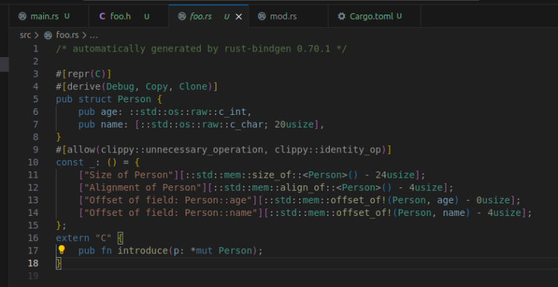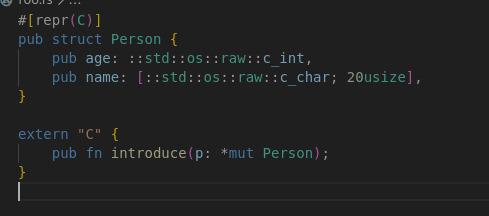 bindings::introduce(&mut foo as *mut bindings::Person);