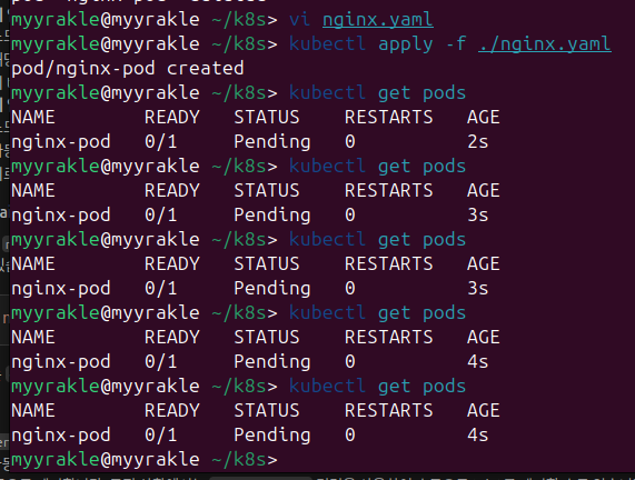nodeSelector์ ๋ง์ฐฌ๊ฐ์ง๋ก ๋ฌดํ ๋๊ธฐ ์ํ์ ๋น ์ง๋ค.