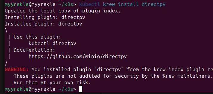 directpv๋ผ๋ ๋๊ตฌ๋ฅผ ๋ค์ด๋ฐ๊ณ ์ถ๋ค๋ฉด, ๋ค์๊ณผ ๊ฐ์ด install๋ฅผ ํตํด์ ๋ค์ด๋ฐ์ ์ ์๋ค.