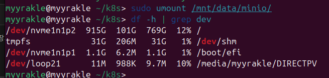 sudo umount /mnt/data/minio/