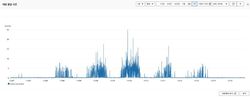 그리고 항상 성능 문제가 있던건 아니고, 통상적으로 유저들이 몰리는 자정-6시 정도 즈음에 성능 문제가 반복적으로, 심각하게 튀었다.