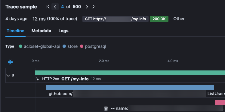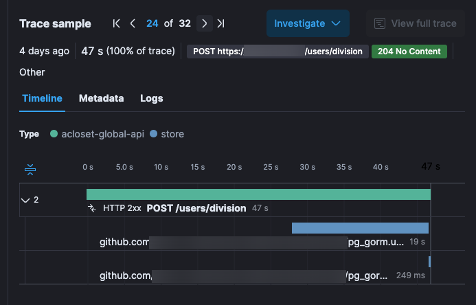 I/O와 연관되어있거나 오래 걸릴 여지가 있는 미들웨어에 대해서는 반드시 Span 등을 찍어서 추적 가능하게 하자