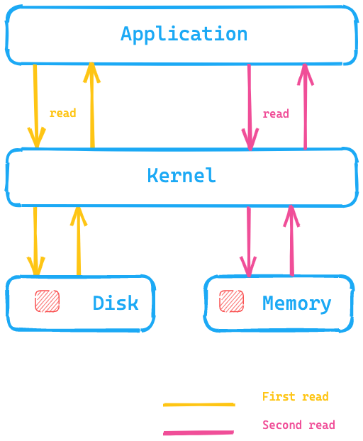 ํ์ผ์ ์ฒ์ ์ฝ์ ๋๋ ๋น์ฐํ ๋์คํฌ์์ ๊ฐ์ ธ์ค์ง๋ง, ๋๋ฒ์งธ ์ฝ๊ธฐ๋ถํฐ๋ ๋์คํฌ์ ์ ๊ทผํ์ง ์๊ณ ๋ฉ๋ชจ๋ฆฌ์ ์ฌ๋ ค๋จ๋ ๋ฐ์ดํฐ๋ฅผ ๋ฐ๋ก ๊ฐ์ ธ์ฌ ์ ์๊ฒ ํ๋ ๊ฒ์ด๋ค.
