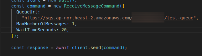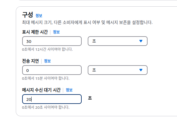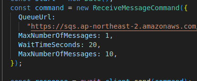 WaitTimeSeconds은 초 단위의 시간값을 받고, 최대 20초까지 지정할 수 있다.
