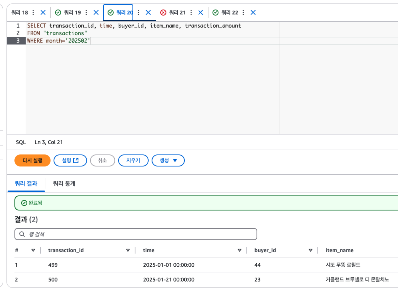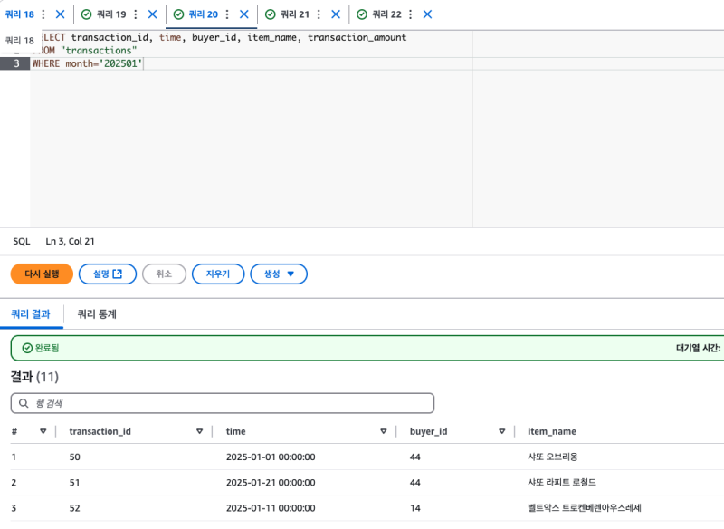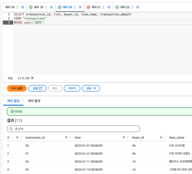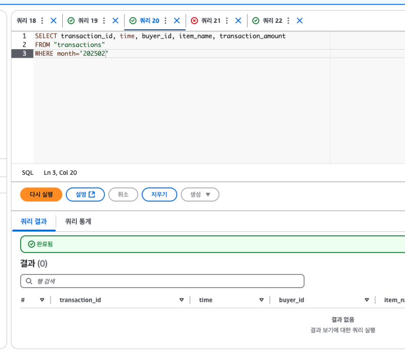 그리고 파티션 필드를 기준으로 필터를 시도하면