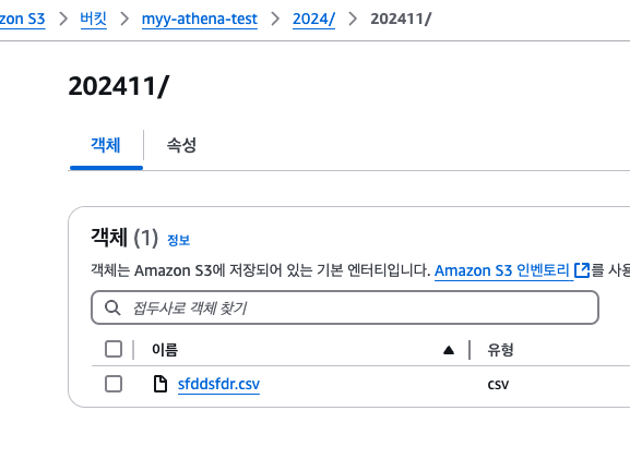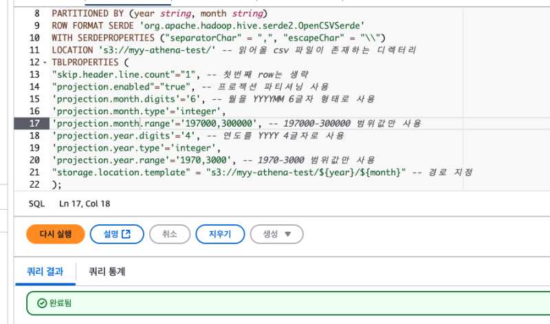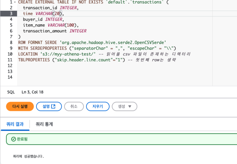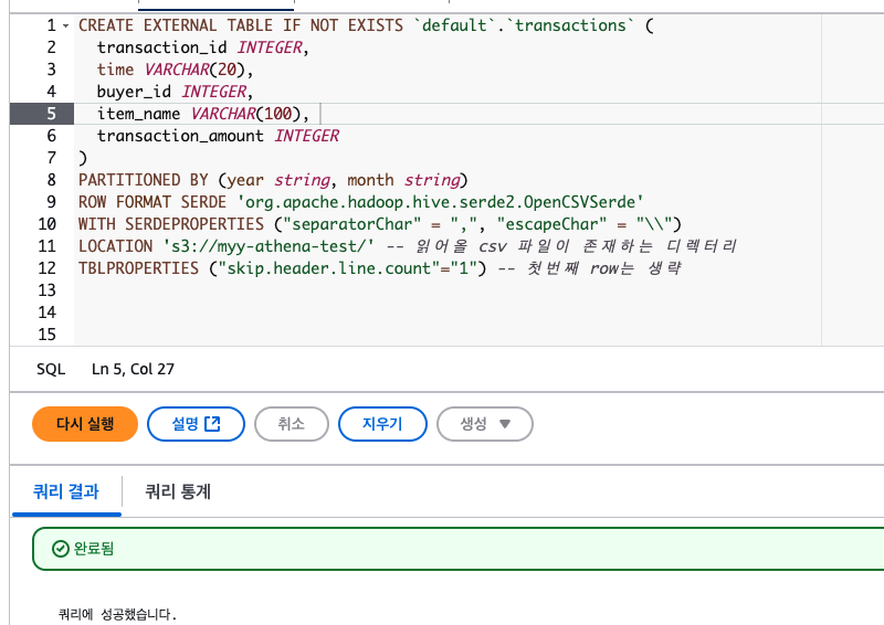 LOCATION 's3://myy-athena-test/' -- 읽어올 csv 파일이 존재하는 디렉터리