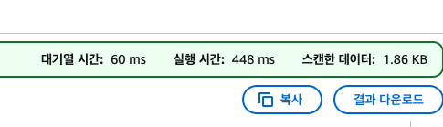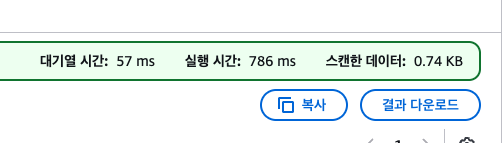 스캔 데이터는 동일해서 비용도 거의 동일하게 나온다.