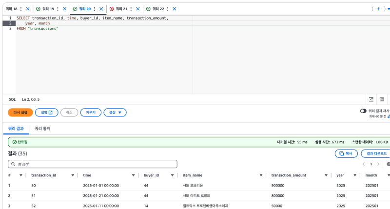 성능도 성능이고, 아테나는 스캔한 데이터 크기 기준으로 요금을 부과하기 때문이다.
