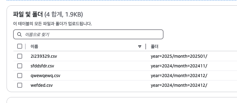 Athena는 기본적으로 S3 디렉터리를 기반으로 테이블 단위를 생성하고, 해당 디렉터리와 하위 디렉터리를 모두 재귀적으로 읽어서 처리하는 방식을 취한다.