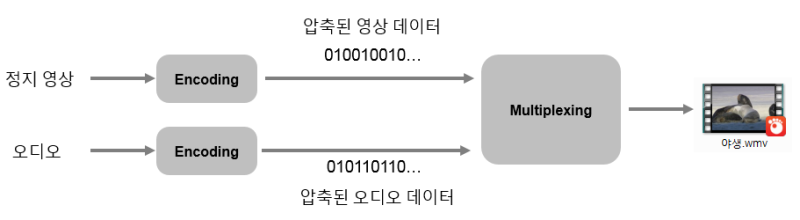 ๊ทธ๋์ ์์ํ์ผ์ ์์ถํ ๋๋ ๋จผ์ ํ๋ฉด๊ณผ ์ค๋์ค๋ฅผ ๋ณ๋๋ก ์ธ์ฝ๋ฉํ ๋ค์์, ๊ฐ๊ฐ์ ์์ถ(๋ฉํฐํ๋ ์ฑ)ํด์ wmv ๊ฐ์ ์์ํ์ผ์ด ๋ง๋ค์ด์ง๊ฒ ๋๋ค.