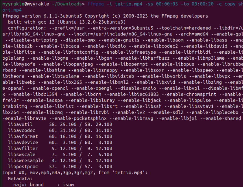 ffmpeg -i tetrio.mp4 -ss 00:00:05 -to 00:00:20 -c copy short.mp4
