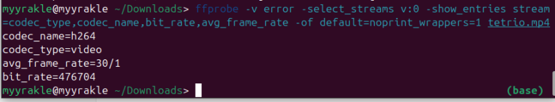 ffprobe -v error -select_streams v:0 -show_entries stream=codec_type,codec_name,bit_rate,avg_frame_rate -of default=noprint_wrappers=1 tetrio.mp4