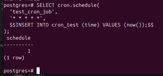 $$INSERT INTO cron_test (time) VALUES (now());$$