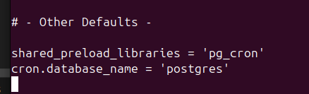 shared_preload_libraries = "pg_cron";