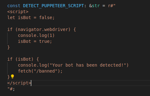 let response_body = format!("<html><body><h1>OK</h1></body>{DETECT_PUPPETEER_SCRIPT}</html>")