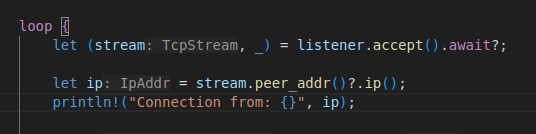 println!("Connection from: {}", ip);