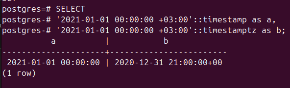'2021-01-01 00:00:00 +03:00'::timestamptz as b;