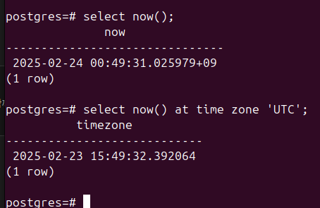 PostgreSQL์์ ์๊ฐ์ ๋ค๋ฃจ๋ค๋ณด๋ฉด ๊ฐ์ฅ ์คํดํ๊ธฐ ์ฌ์ด๊ฒ ์ด 2๊ฐ์ง ํ์
