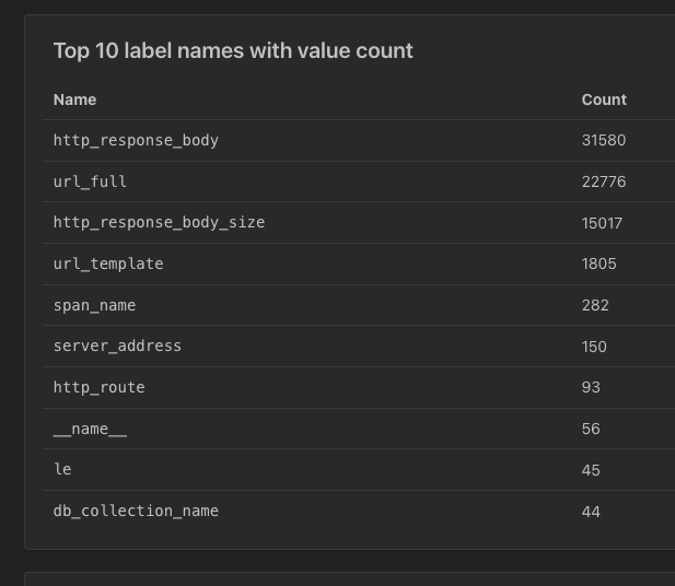 예를 들어 값의 범위가 굉장히 다양할 수 있는 response body나 url 같은 저런 필드들은 prometheus에 넣으면 안된다.