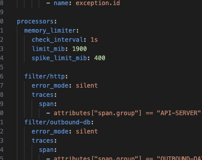 메모리 제한을 걸려면 config에 memory limiter를 걸면 된다.