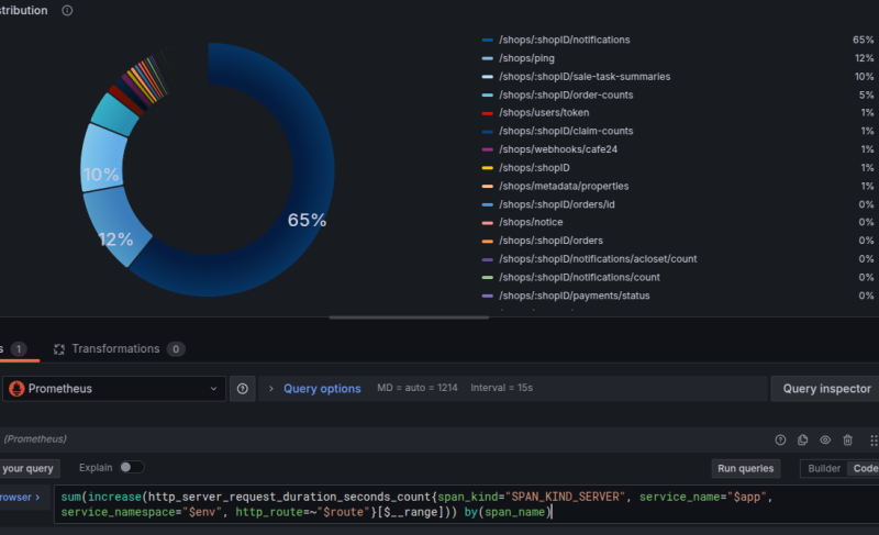 sum(increase(http_server_request_duration_seconds_count{span_kind="SPAN_KIND_SERVER", service_name="$app", service_namespace="$env", http_route=~"$route"}[$__range])) by(span_name)