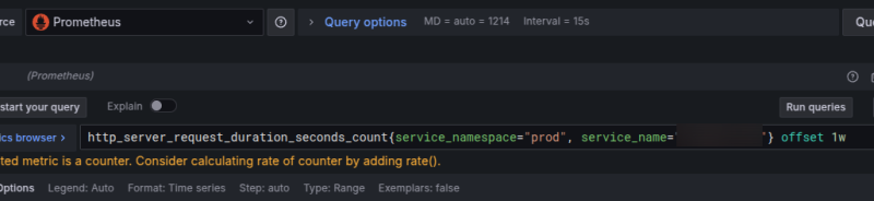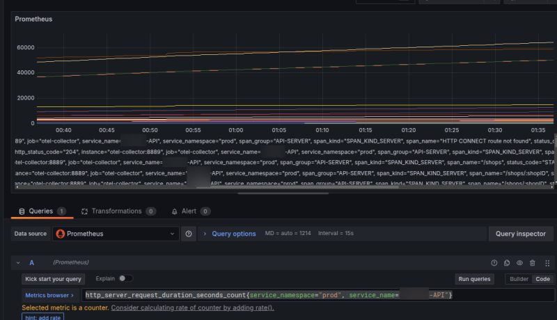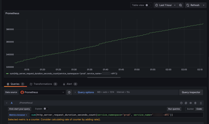 sum(http_server_request_duration_seconds_count{service_namespace="prod", service_name="...-API"})