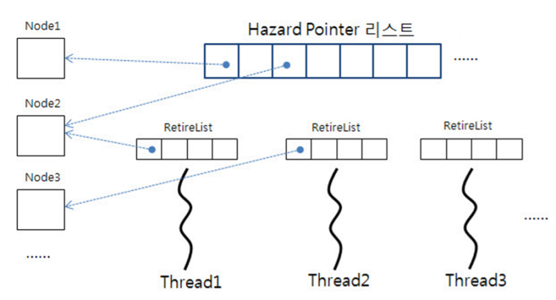 ํ์ฌ ์ฌ์ฉ๋๊ณ ์๋, ํด์ ๋์ง ๋ง์์ผ ํ๋ ์ฃผ์ ๋ชฉ๋ก์ Hazard Pointer๋ผ๊ณ ํด์ ์ค์ํํด์ ๊ด๋ฆฌํ๋ค.