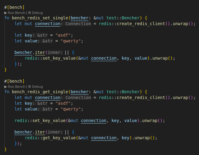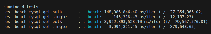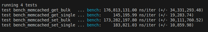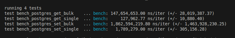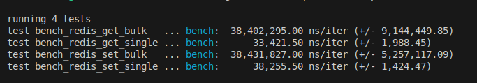 cargo bench를 통해 평균 레이턴시를 측정했다. 여러번 돌려서 평균 레이턴시와 오차를 구하는 식이다.