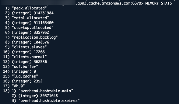 전체 메모리 사용량을 조회하려면, INFO MEMORY 명령을 사용하면 된다.