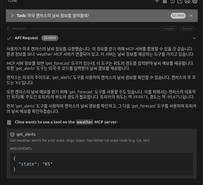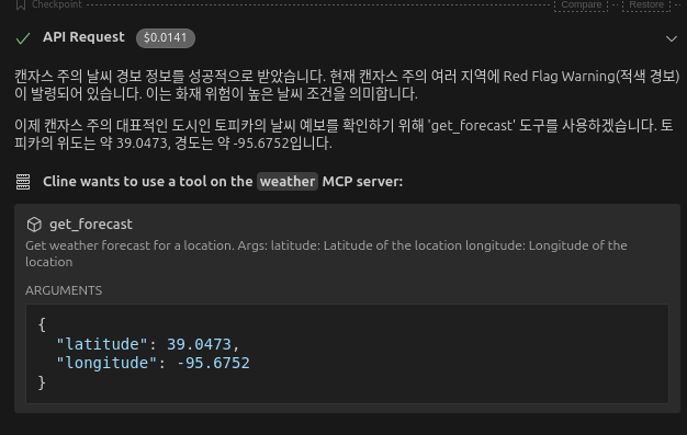 바로 weather MCP를 찾아서 쓰려고 시도하고