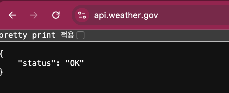 우리가 지금 MCP의 데이터소스로 연동할 것은 미국 정부에서 제공하는 날씨 정보 API다.