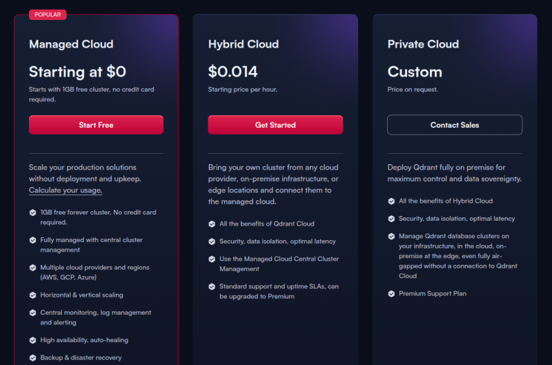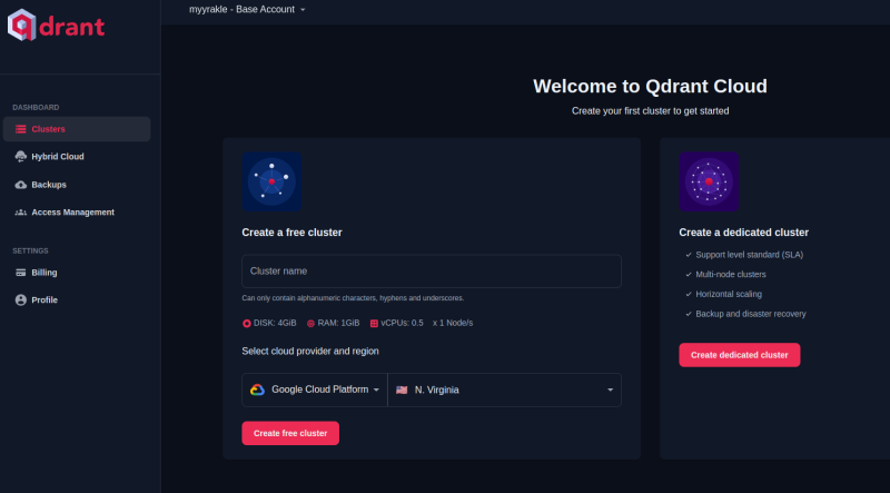 qdrant는 오픈소스지만, 기업형 오픈소스라서 전용 클라우드 서비스 또한 제공이 된다.