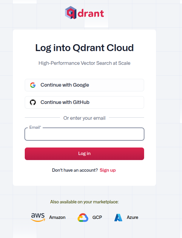 qdrant는 google과 github 로그인을 지원한다.