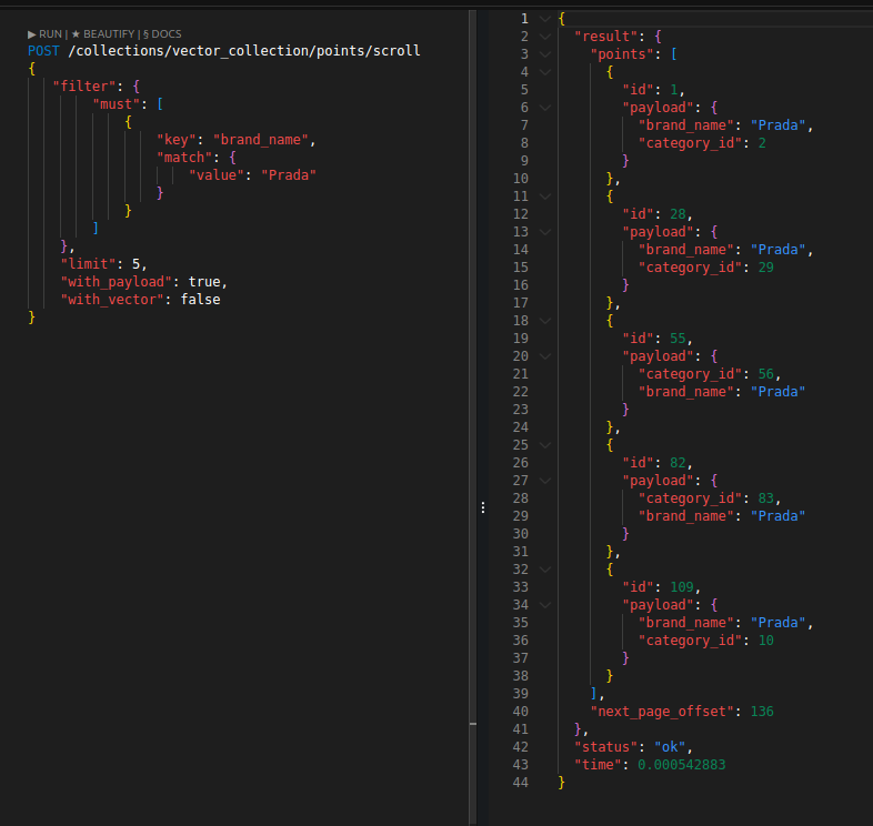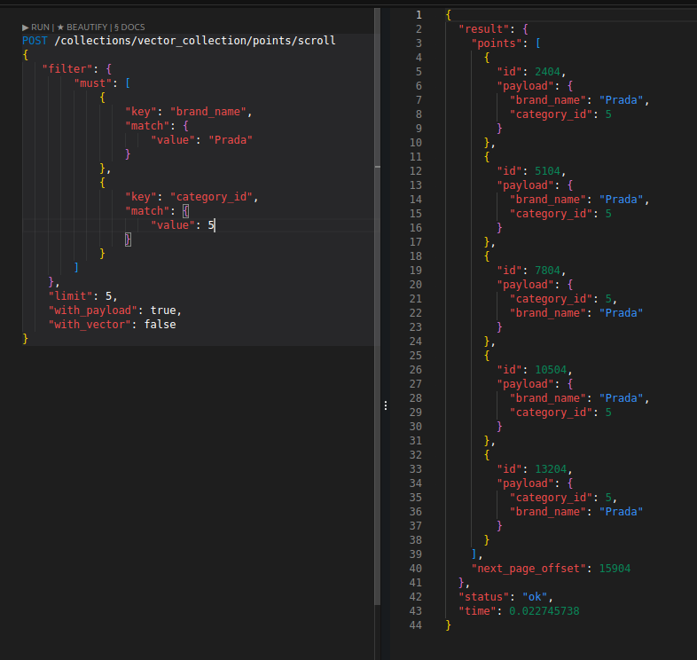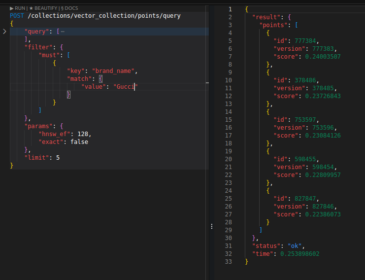 query API๋ ๋ฒกํฐ ๊ฒ์๊ณผ ํจ๊ป ํํฐ๋ฅผ ์ง์ ํ๋ ๊ฒ ๋ํ ์ง์ํ๋ค.