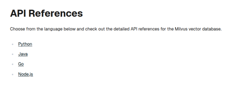 Client SDK 지원 수준은 qdrant보단 좀 별로다.