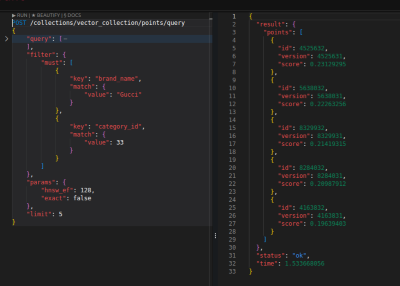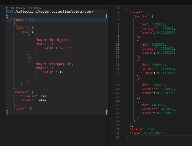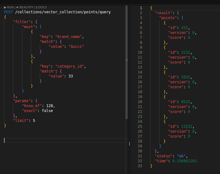 그리고 벡터 검색에 대해서도 필터링을 거는 것이 가능하다.